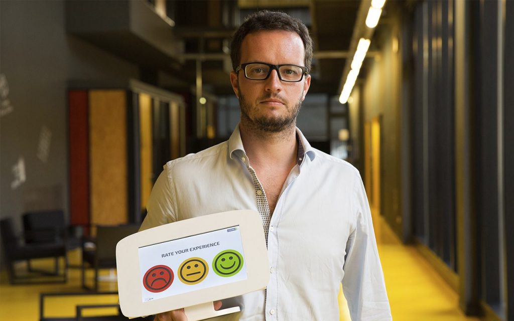 Somos cuatro socios fundadores en RateNow, la startup de las caritas en pantalla táctil para recoger valoraciones y comentarios de los clientes en el punto de venta. Éramos amigos antes que socios. Teníamos la inquietud de crear un proyecto propio que pudiera crecer, y sellamos el compromiso de iniciar una aventura empresarial juntos con un brindis de gintonics en un copeo (dicen que es donde se tienen las mejores ideas).