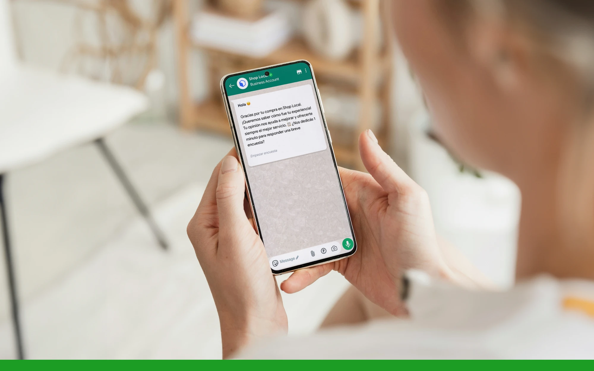Las encuestas por WhatsApp adoptan el tono conversacional propio de la plataforma, lo que reduce la fricción y multiplica la tasa de respuesta, especialmente si se envían justo después de una interacción clave: una compra, una atención en tienda o un servicio recibido.